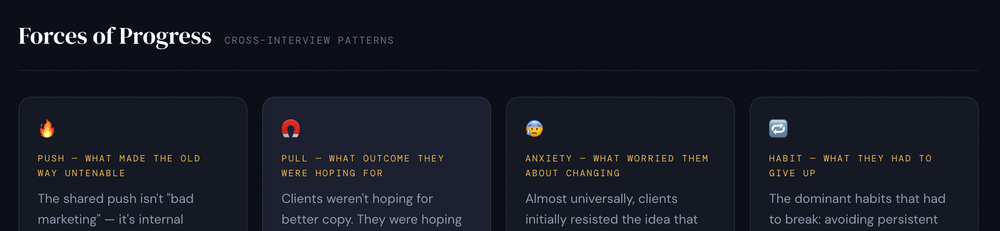 And for a long time, I couldn't figure out why. They were doing everything right: surveys, interviews, patterns, synthesis. Beautiful charts, decks.